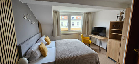 Wir bieten mit unseren hell und geräumig eingerichteten Zimmern eine gute und preisgünstige Alternative der Übernachtung. Alle unsere Zimmer sind excl. Frühstück ab 2 Nächten buchbar.